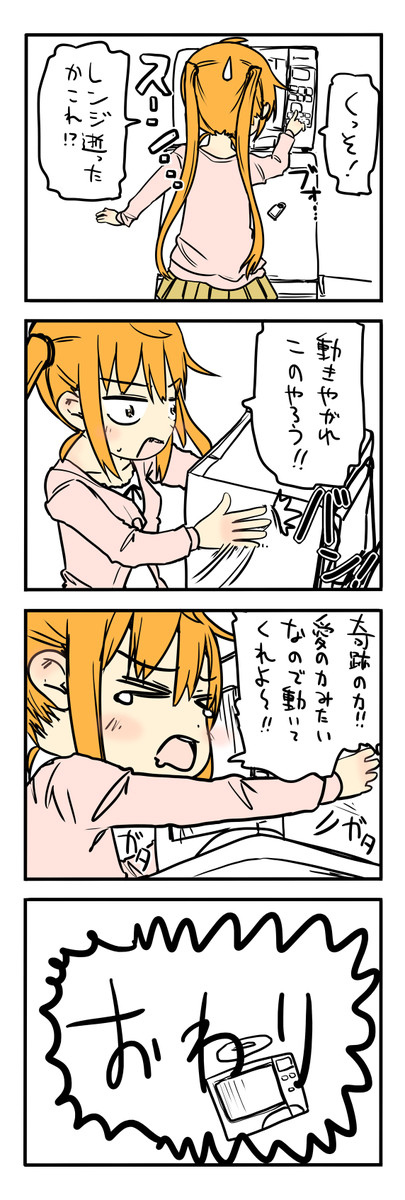 自分がツインテールのかわいい女の子だと思い込んで、今日の出来事を4コマにする。2