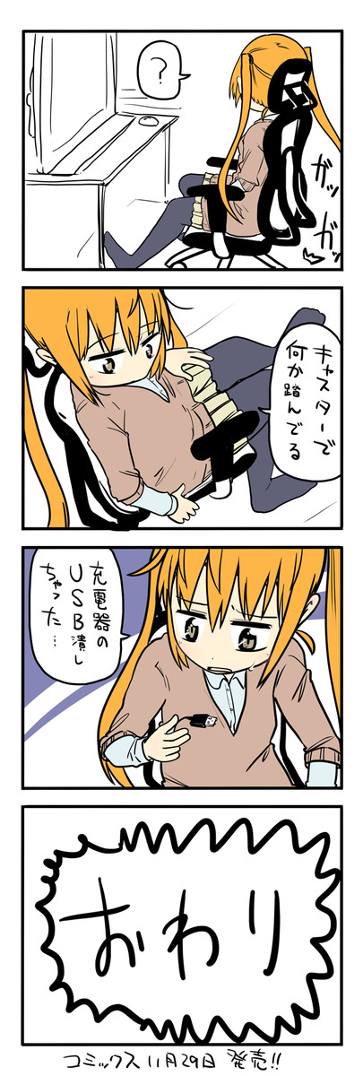 自分がツインテールのかわいい女の子だと思い込んで、今日の出来事を4コマにする。2