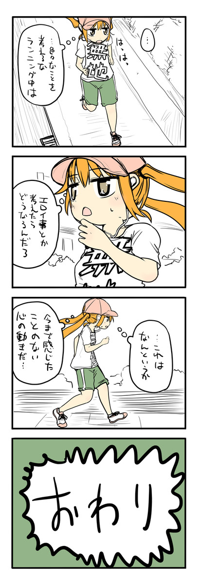 自分がツインテールのかわいい女の子だと思い込んで、今日の出来事を4コマにする。2