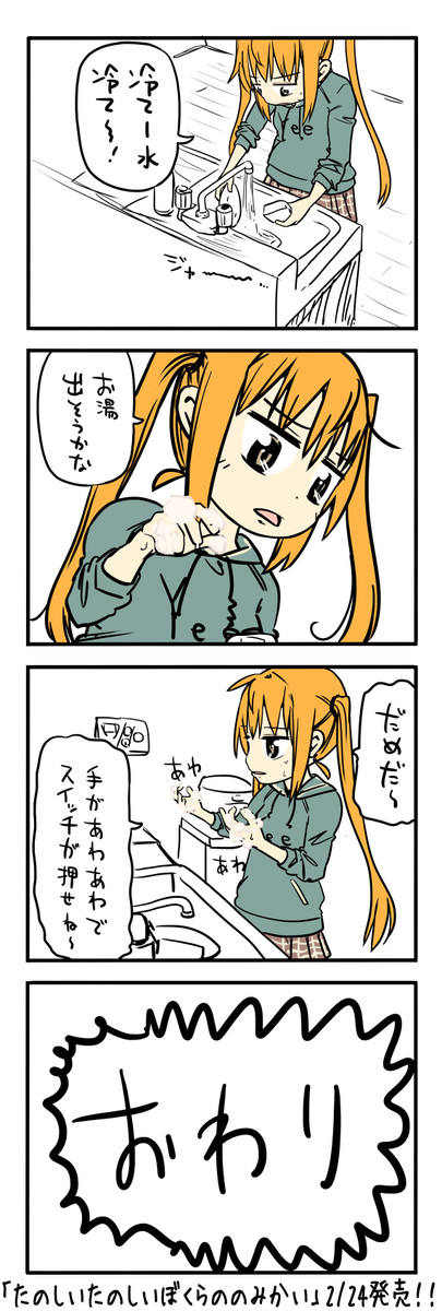 自分がツインテールのかわいい女の子だと思い込んで、今日の出来事を4コマにする。2