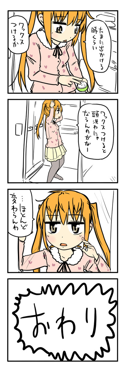 自分がツインテールのかわいい女の子だと思い込んで、今日の出来事を4コマにする。2