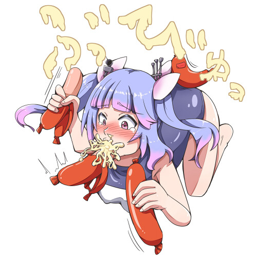 魚肉ソーセージに仕込まれたマヨネーズが勢い良くイクの口を…