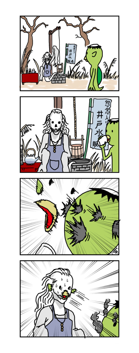 【きょうこつ】 井戸に捨てられた骸骨や、井戸に落ちて死んだ人…