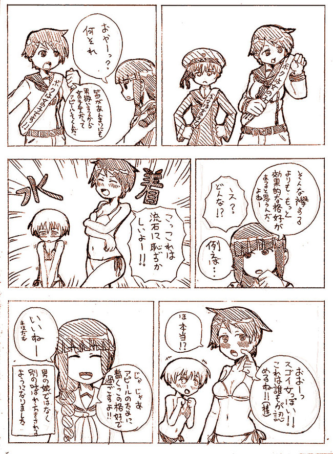 3P目はこどもの日ネタ。 4P目は立ち絵だとポケットに見えるって…
