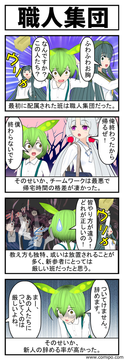 基本的に新人が入って来ても面倒を見る人はいなかった。 教育…