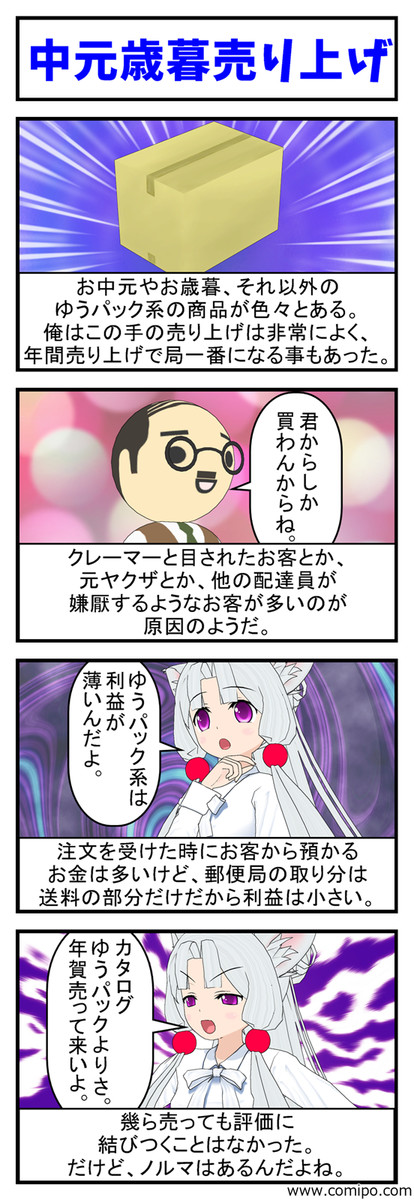 俺のいた局ではお中元とお歳暮、カタログゆうパックの売り上げ…