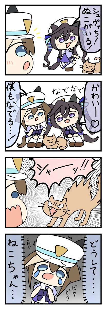 ねこをなでるヴィブロスとシュヴァち!
