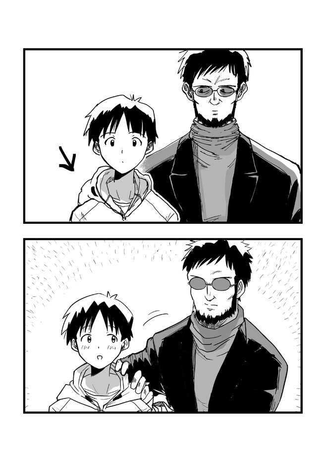 パーカーのフードがズレているのを直してくれるゲンドウ