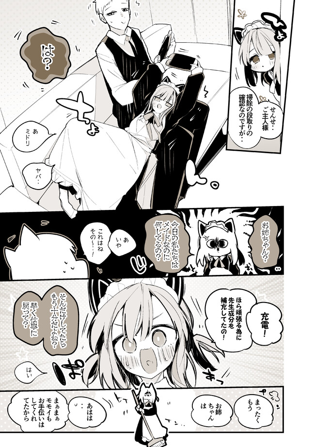 モモイの頭撫でてたらミドリにじって顔見ながら服の裾ちょっと…